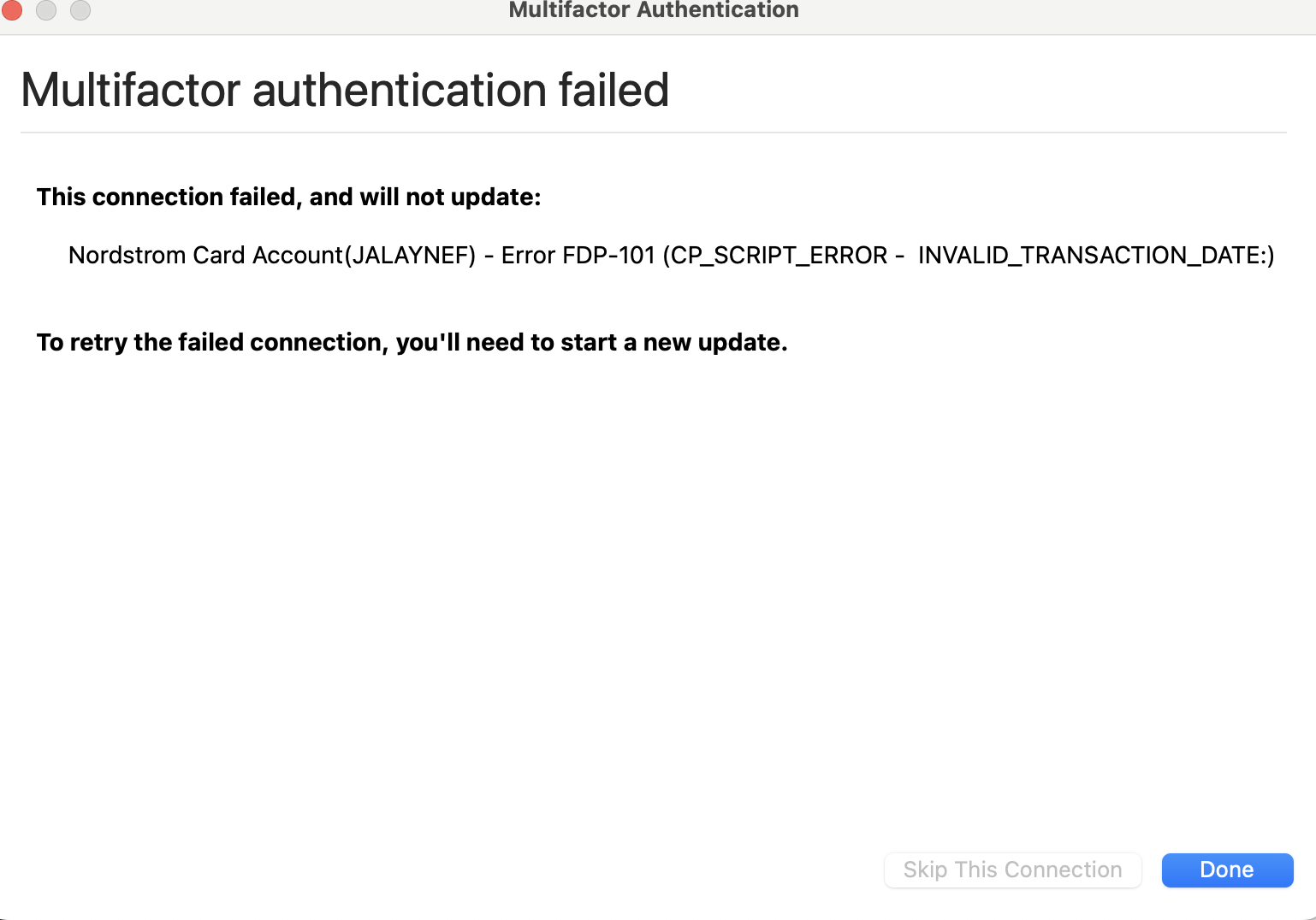 Once again, Nordstrom refuses to allow connection from Quicken for the Mac