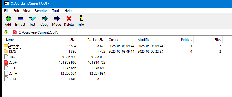 And the auxiliary files have certainly changed over the years. And one thing that always seems to get forgotten in this discussion is the attachments. The attachments are held in a folder that sits alongside of the QDF file (whether that be in a Windows folder before Quicken 2010, or afterwards in the compress QDF that has the old .QDF,… and Attach folder)