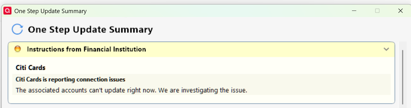 I'm experiencing still the same issue as in the post above, "Citi Cards is reporting connection issues".