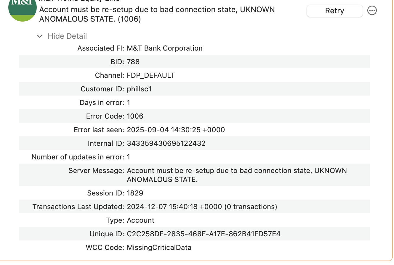 Errors when syncing with M&T Bank - new August 29 and continuing