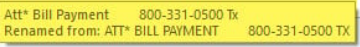 Problem: Downloaded transaction "ATT* BILL PAYMENT 800-331-0500 TX" does not match renaming rule: "If payee contains 'Att' rename to AT&T".