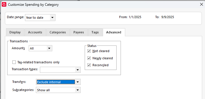 On the Advanced tab of the customization window for reports is the ability to include Internal Transfers. Internal Transfers are normally excluded because they aren't income or expenses, but this feature can be used to do things like you are trying to do. I haven't tested it explicitly, but I expect you will be able to use this to generate what you are seeking in a report.