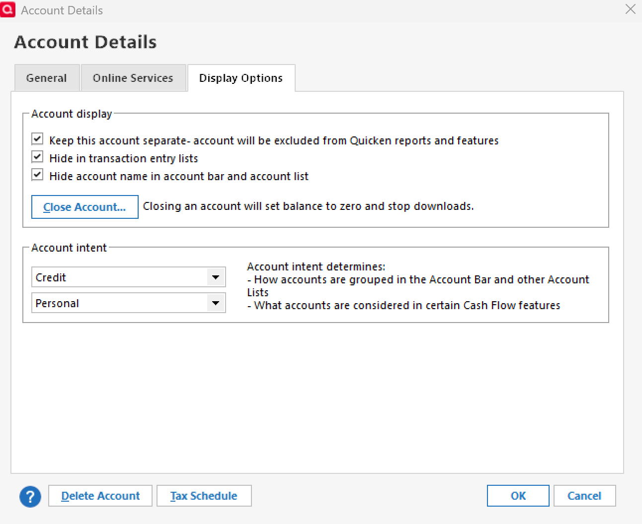 As a workaround—you can keep the account set up for transaction downloads so the Online Biller can be added, and then hide the account in your account list if you don’t want it visible. This way, your bill reminders will work properly without cluttering your account view. To hide the account: