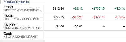 I think that I will try to keep my FZDZZ balance an even number and not reinvest and let my cash position float so that the numbers in Quicken and Fidelity somewhat match.