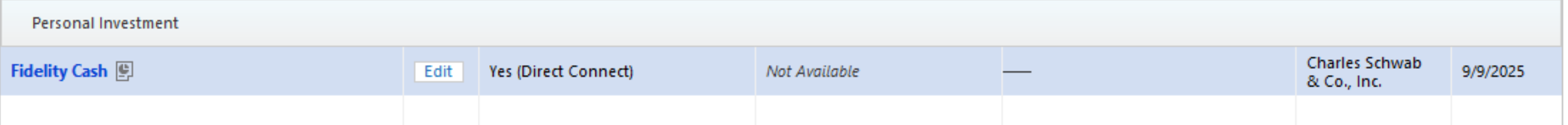 You have named the account "Fidelity Cash" but according to the Account List it is an investing account connected to Schwab.