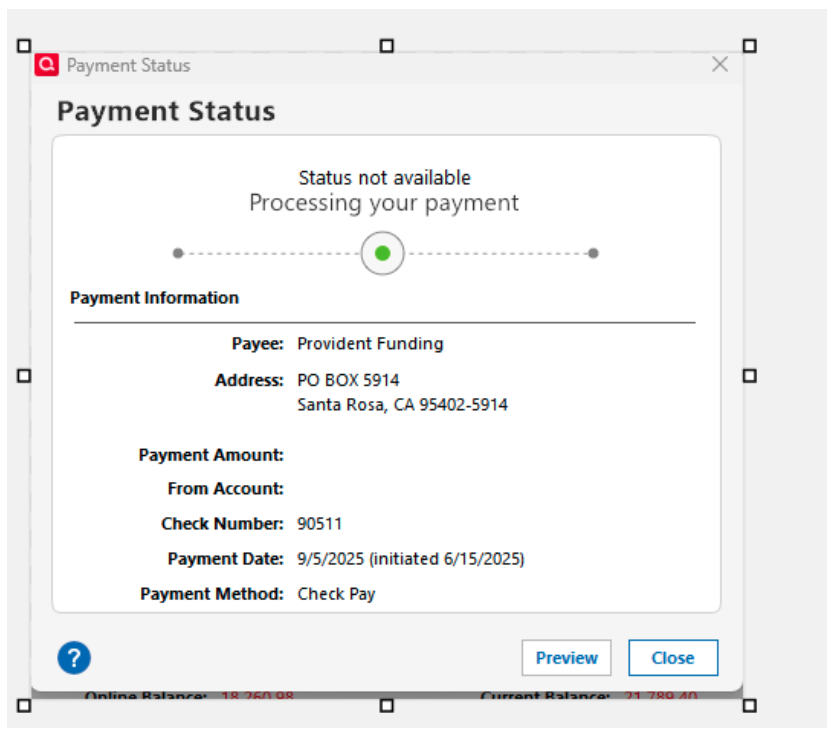 Prior to the latest upgrade, I was able to obtain a status check associated to a specific Pay by Check vendor. Now that status is unavailable. This is the case for all four checks sent to Provident Funding.