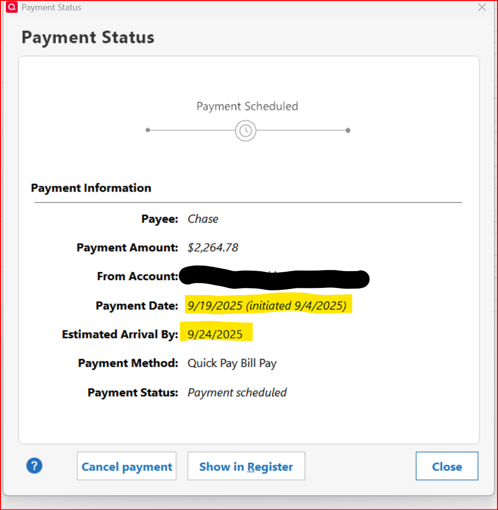 Have a Quick Pay scheduled to Chase for over $1,500 and have made smaller payment when beta testing. The payment has worked with Chase. Here is the current Payment Status: