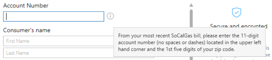 I have a suggestion to clarify the enrollment form. One, the "info" button next to the Account number box for Southern California Gas Company says to include the first 5 digits of the ZIP code after the account number. Really? Who would even think to include this?