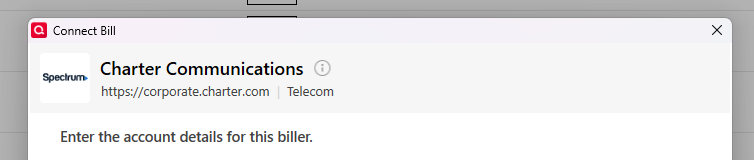 Posting here to elevate this issue. I'm having the same one with Spectrum online billing. The dialog boxes ask for the account number and address for the account. After entering all of that information correctly, it will display a "Pending" status for several days and then return a "Failed" status. When pressing "Fix It" it asks to confirm the information and resubmit. There are only two options when typing in "Spectrum" for the online billing, "Spectrum Credit Union - Credit Car" and "Charter Communications". The "Charter Communications" routes to "https://corporate.charter.com". It should route to "https://www.spectrum.net" or "https://www.spectrum.net/login". Another suggestion would be if a billing provider, like Spectrum, is not supported, it would be better to just return "Not Supported". Then your provider could track how many "Not Supported" responses they gave in order to generate a priority list.