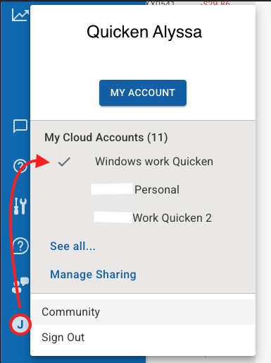 To see if this is the case, from Quicken on the Web, you would click on the circle icon with the first initial of your name in it, from the bottom left corner of the screen. The current dataset you are looking at will have a checkmark next to it.