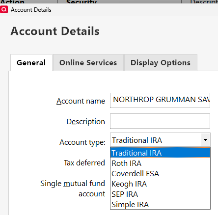 And the only choices once the account is added as "IRA or Keogh Plan":