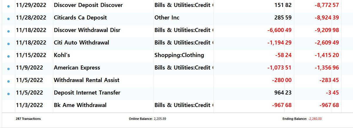 That's what I first tried to do. It was the most logical. I tried to enter a transaction on 11/2/22 but probably got the amount or set up of the register wrong because the final Balance was not quite right. I was going to increase the amount but got nervous and asked for help. I will probably try again with a proper register that you suggest (after I get the emotional strength to eliminating my fake deposit from yesterday).
