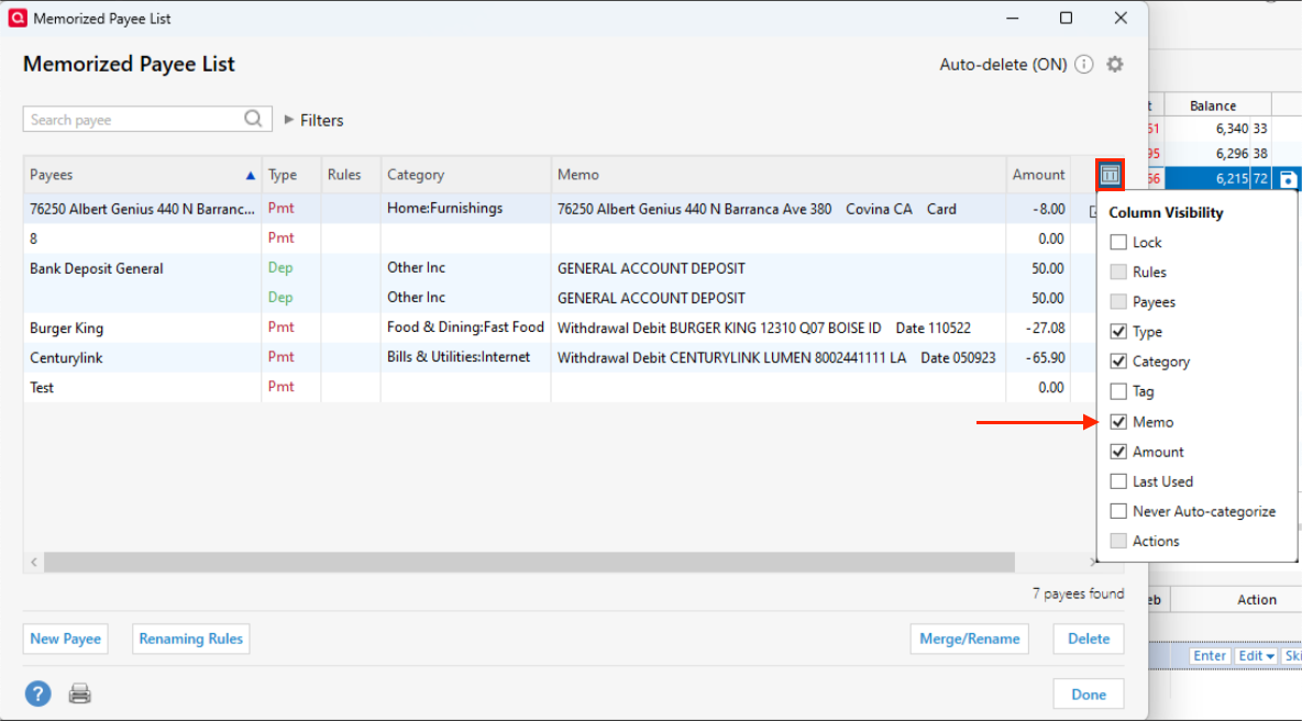 Also, if you haven’t seen it yet, there's an option within the Memorized Payee List to add the Memo column, which can help give you more context at a glance.