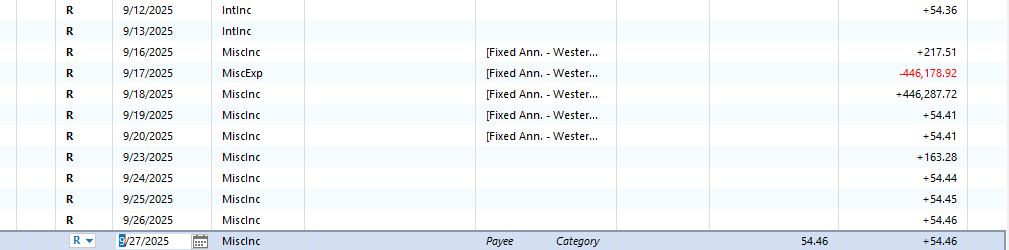With these annuity accounts, I don't see anything in activity, but the balances are updated Tuesday-Saturday. I don't normally see changes in balance on other days. I am seeing no error messages/codes when I update. These accounts are managed by NY Life and Western Southern and those entities probably feed updated balances to Fidelity, which Fidelity then updates the accounts in their system. It is just odd that while I had it in simple mode, it appears to be downloading transactions but wasn't showing the balance, not when I changed to complete a balance shows but new transactions don't show up to update balance. See attachment. 9-16 - 9-20 were in simple mode and since 9-20 I have been entering manually.