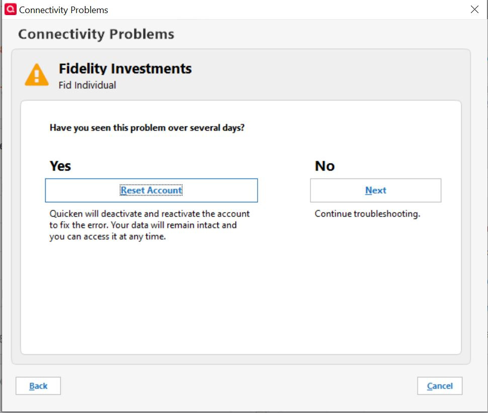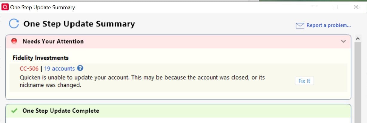 Fidelity accounts not updating and seeing "Fix It" prompts