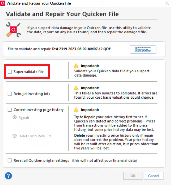 - Close Quicken completely (leave it closed for at least 30 seconds)
