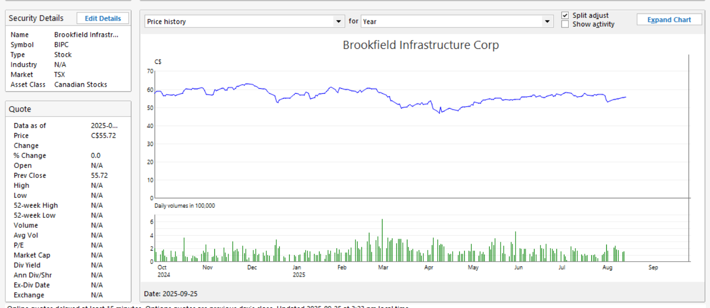 I have BIPC, BIP.UN, BEPC, BEP.UN on my watchlist. pricing updates for these stopped Aug 13, which I believe is around the time when I upgraded to R63.22.
