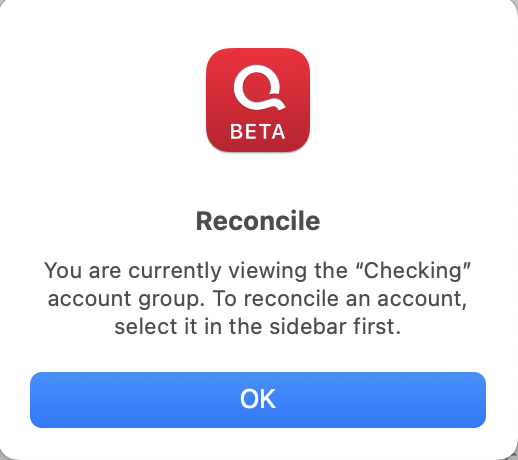 I am a long-time Quicken for Windows user and switched to Quicken for Mac about 6 months ago. I was succesfully reconciling my checking account every month through July, but when I clicked the Reconcile button at the bottom right in August nothing happened; I didn't get the reconciliation screen at all. I've tried updating Quicken and nothing has changed. Am I missing something?? I am on Quicken Classic Premier version 8.3.2