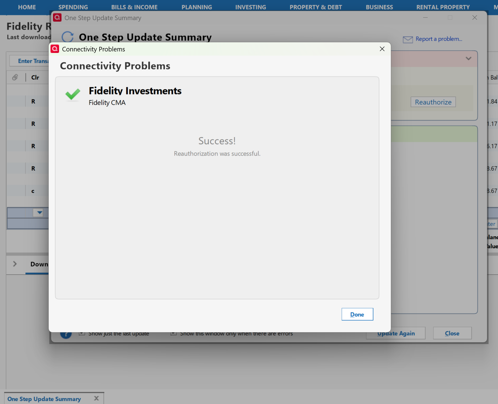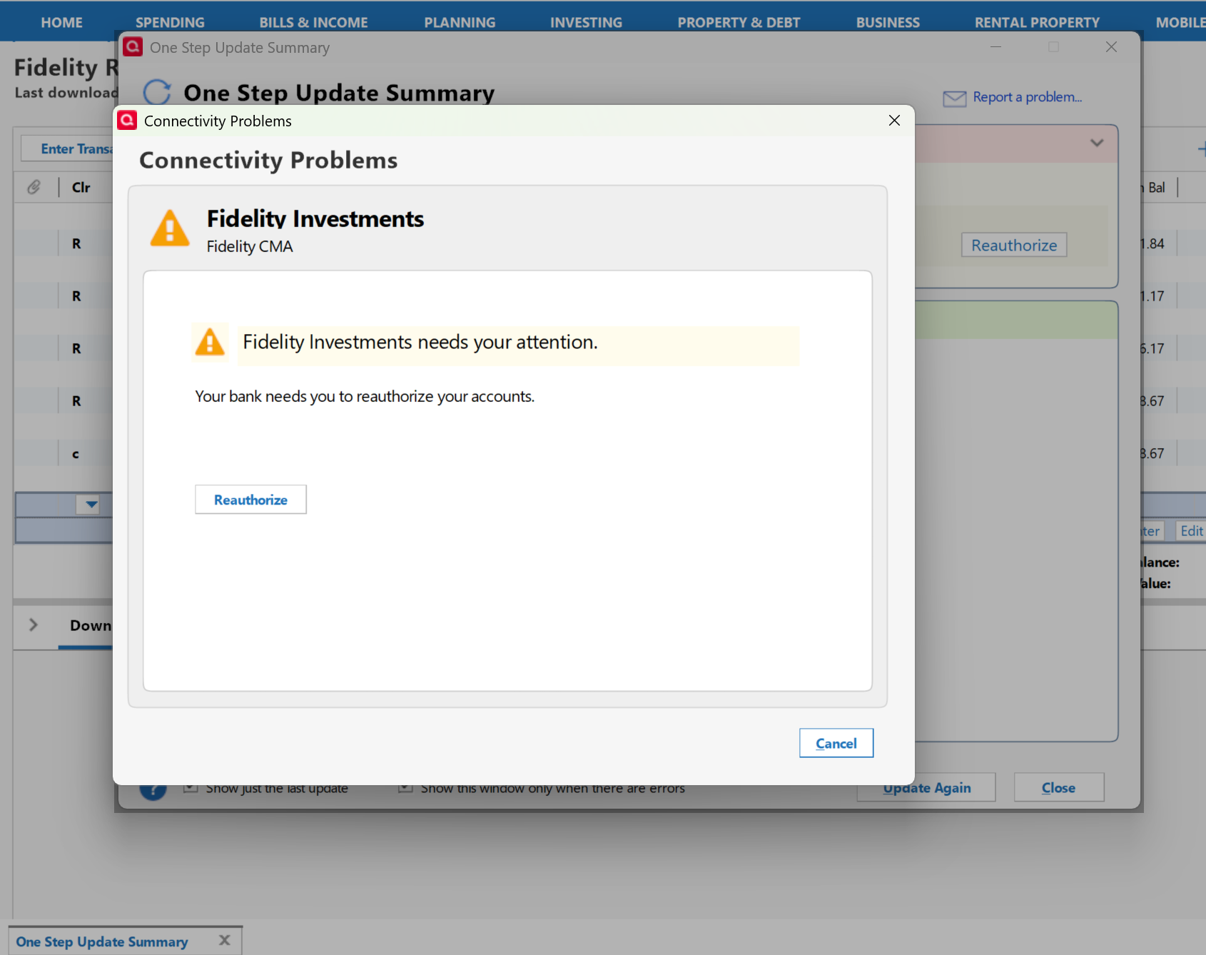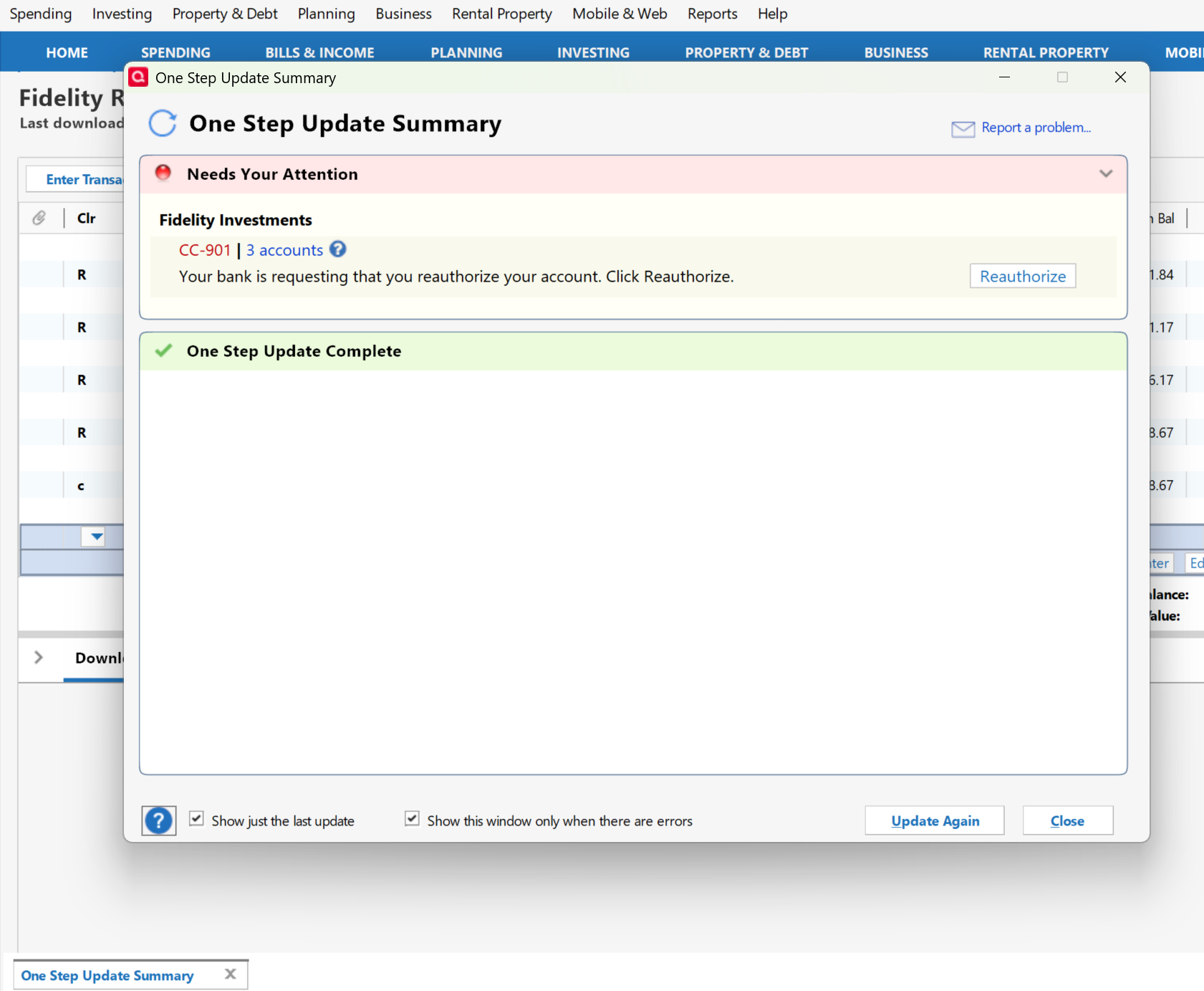 I just joined the beta group and installed the version noted above. This morning I received a OSU error cc-901, need to reauthorize. I went through the reauthorization steps without issue but the error persists. In the initial update Fidelity flags as successfully updated (green circle) but when the summary appears the error is still present. I went through the reauthorization process again, but now it stops in an error state in my browser, while quicken sees the reauthorization as successful. I deactivated the accounts, exited and reopened quicken, and then re-enrolled the account. This process went smoothly, but after it completed, trying to do an OSU produced the same need to reauthorize error.