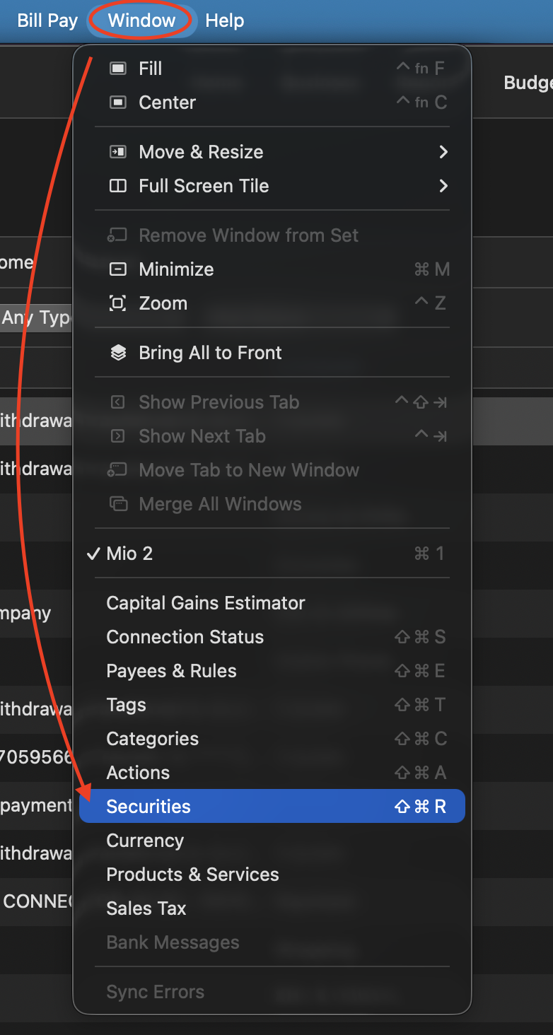 - If the Transactions tab is greyed out, hold down the Option (⌥) key on your keyboard and then click the tab — that should allow it to open.
