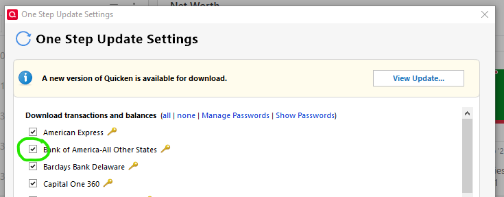 I have Quicken Version R64.30 on Windows 10. I have two separate bank accounts, a checking account and a savings account, at USAA bank. Both were set up with One Step Update ever since I started using Quicken a few years ago. However, at this particular time I only need to update the savings account. After opening "Update" can I do this by clicking the "edit" button to uncheck the "Yes" box next to the checking account, download the savings account, and then go to Edit to re-check the "Yes" box next to Checking to enable downloading it again? I hope that makes sense, Thank you.