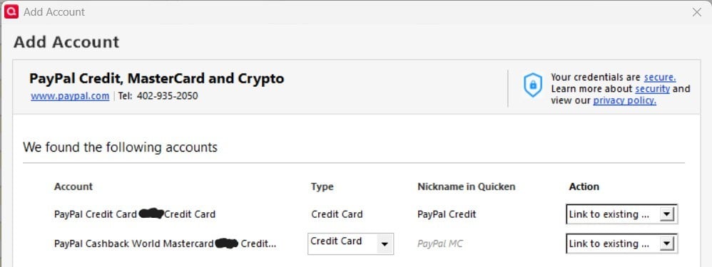 @Quicken Alyssa I tried the Adding a new account wizard today and was able to link my PayPal Credit Card account, so it seems to be working now. Thank you for your diligence and ongoing support help on this issue!!!