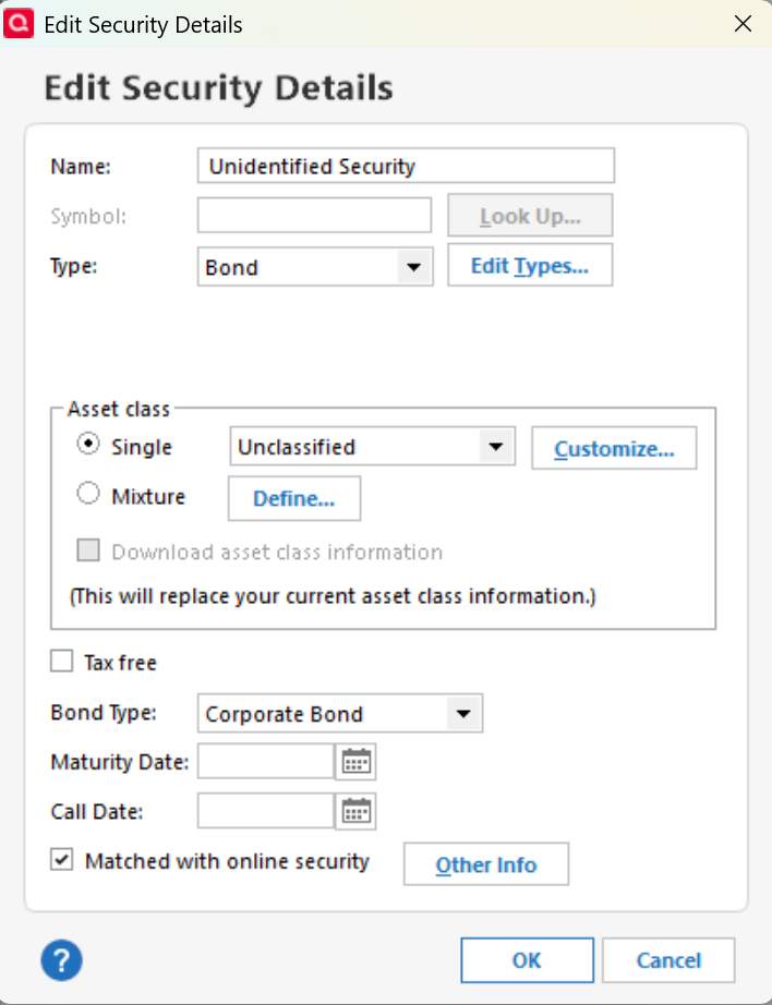 Fidelity download gives "Unidentified Security" on new downloads