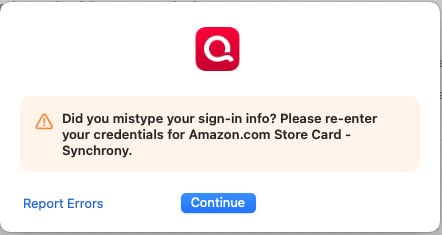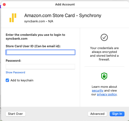 I am not able to connect to my Amazon Synchrony account. I am using the exact same same username and password that I use to login on the Synchrony website. I sent a report also. -Derryl