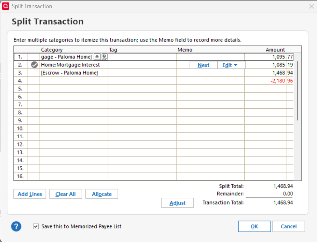 Balance errors created by reconciling a transaction