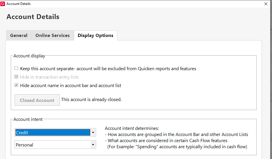Also note that Closing an account can't be undone … so if it's not closed in real life, don't close it in Q.