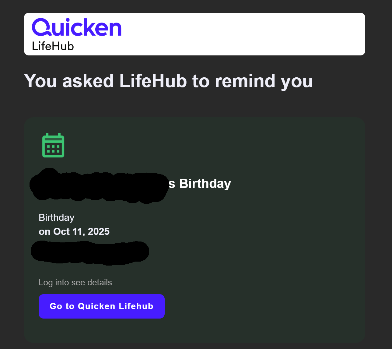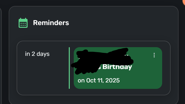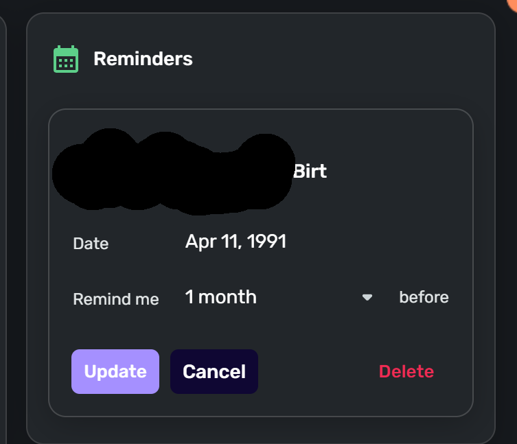 I set up my first reminder to test this function with my actual birthday and anniversary.