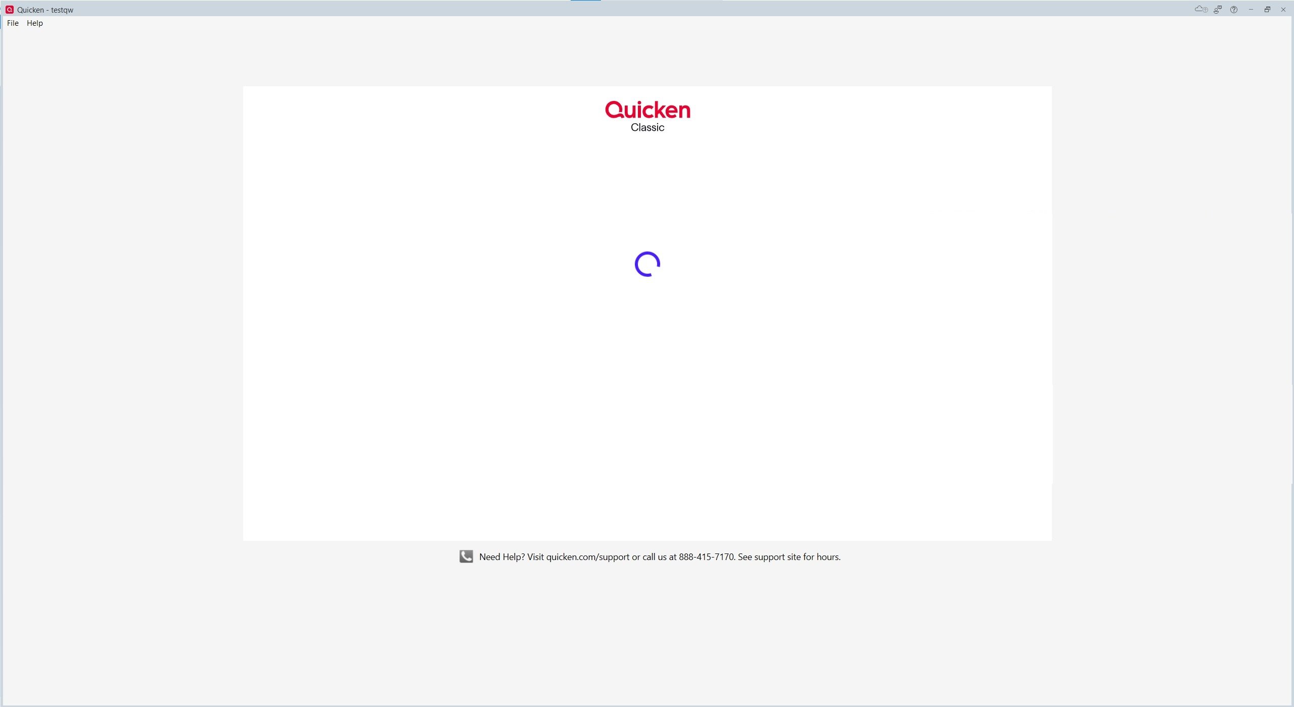 Completely removed the quicken installation by uninstalling, removing the residual Program Files (x86)/Quicken directory. Reinstalled using the installer downloaded from within my online quicken account. Same results. Creating a new, empty file from the fresh quicken installation brings up the full-screen login, which gets stuck with the spinning circle icon after entering my password. Tried updating Windows and rebooting, same results.