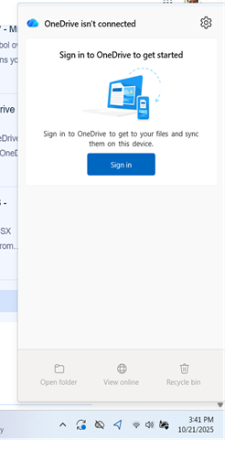 I'm not sure how well you can see this but my OneDrive is not connected.