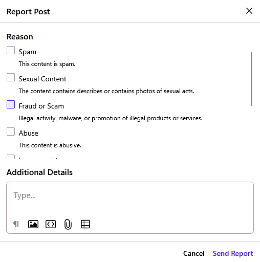 But there are many cases where you just want to flag it for the moderators like it needing to move to another category.
