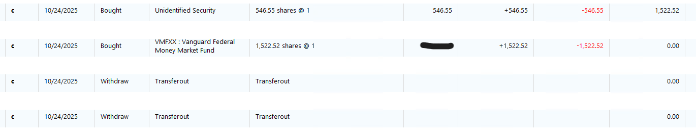 The Bought of Unidentified Security should have been an Xout to a BrokerageLink account.