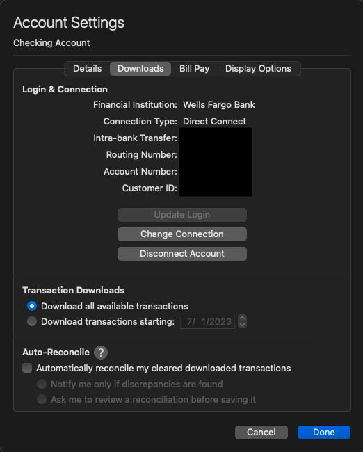 I tried clicking "reconnect" , selecting the connection type, logging into USAA, accepting the terms, and then returning to Quicken.