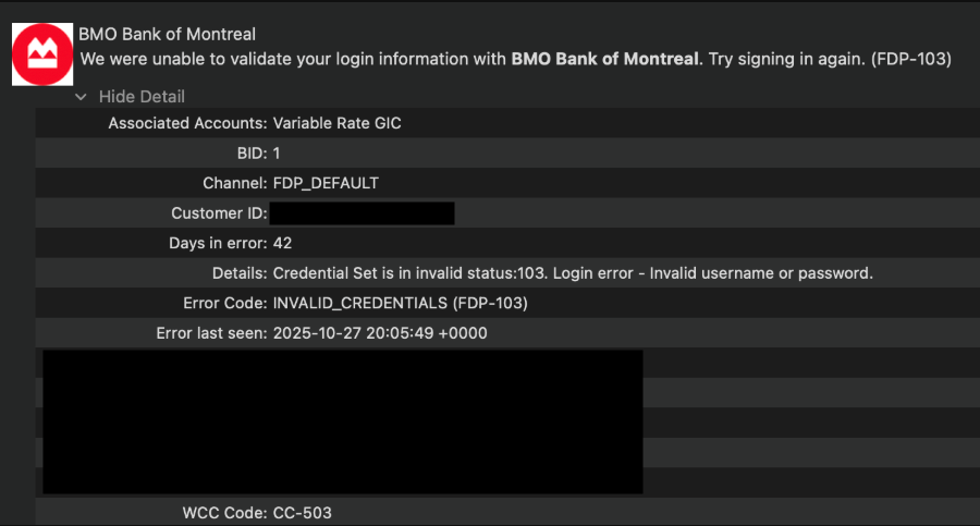 I have BMO accounts. Up until recently the transactions downloaded well to my Quicken Classic Deluxe for Mac. They are no longer downloading. I have disconnected and reconnected twice to no avail. See the error message below.