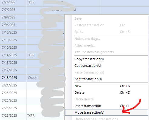 Note I have my transactions go directly into the register so I can use the power of the register to handle problems like this. Doing this in the Downloaded Transactions tab is different/harder at least in my opinion.