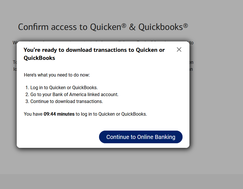 I understand the "correct" way of getting the link established, which is to go through the Online Services tab and click "Set Up now…", select Bank of America as the FI, etc., but I did go a little further down that path and came to this:
