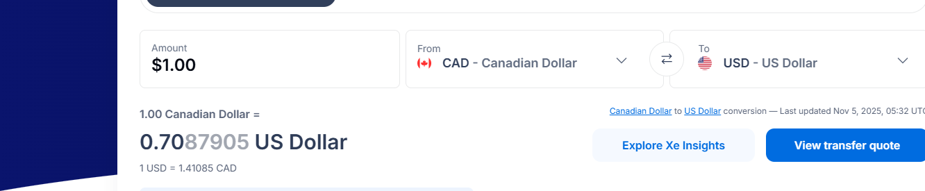 Previous FX update for the US$ to C$ on October 13 showed as 0.71272.