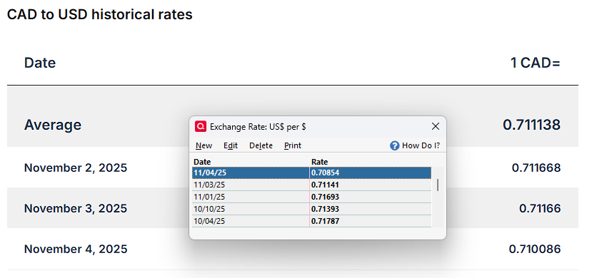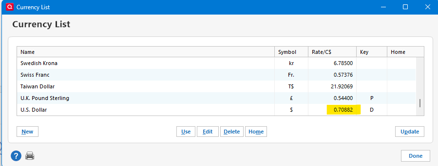 Using Quicken Classic but not downloading from TD or any other bank, there seems to be no location where you can see the Exchange Rates they use. My account is based on C$, but I find that in order to figure out the C$ value of US$ items, I have to deduct all the C$ items to come out with the C$ value of the US$ items.