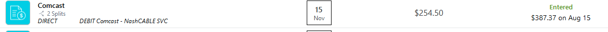 Under "Bills & Income", I'm seeing some instances of the same thing. Last Payment is shown as August (and that amount is correct for that date), but there were also payments in September and October which have cleared my card account and been downloaded into Q.