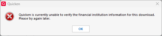 Quicken unable to verify financial institution