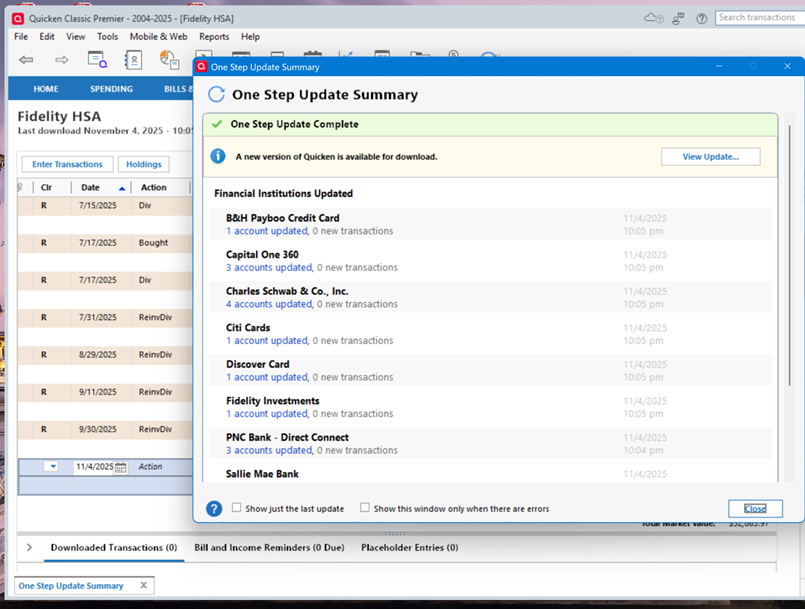 Updated to R27.1.64.29 and although OSU says Fidelity Acct. Updated, It Did Not! Both OSU and Account Page say Fidelity Acct. Updated. It did not download any transactions for October! I have 3-4 October Transactions in my Fidelity Acct. and none download! Last transaction 9/30/25. Fix this please!