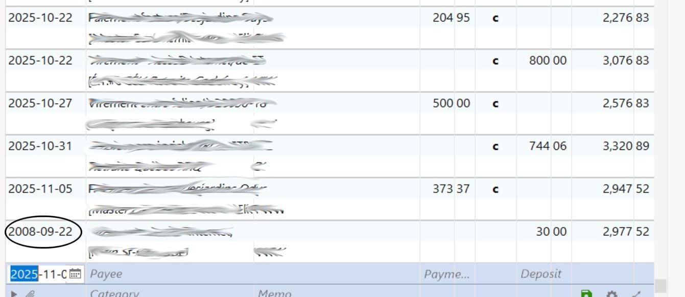 This morning I got this strange date error in one account. This transaction camed from an hidden account.