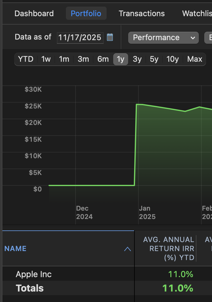 When I look at the performance chart for the account, I see that it's has a 11% total return for the year to date: