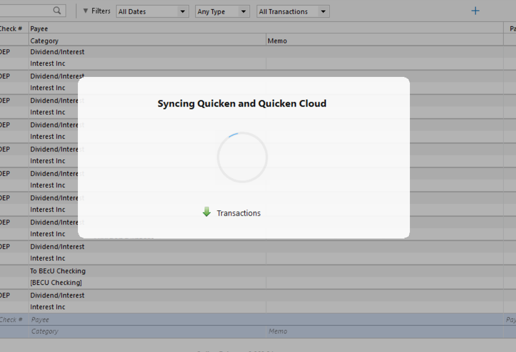 But it gets stuck on the connect issue. Quicken seems to try to connect but never does. Not sure why.