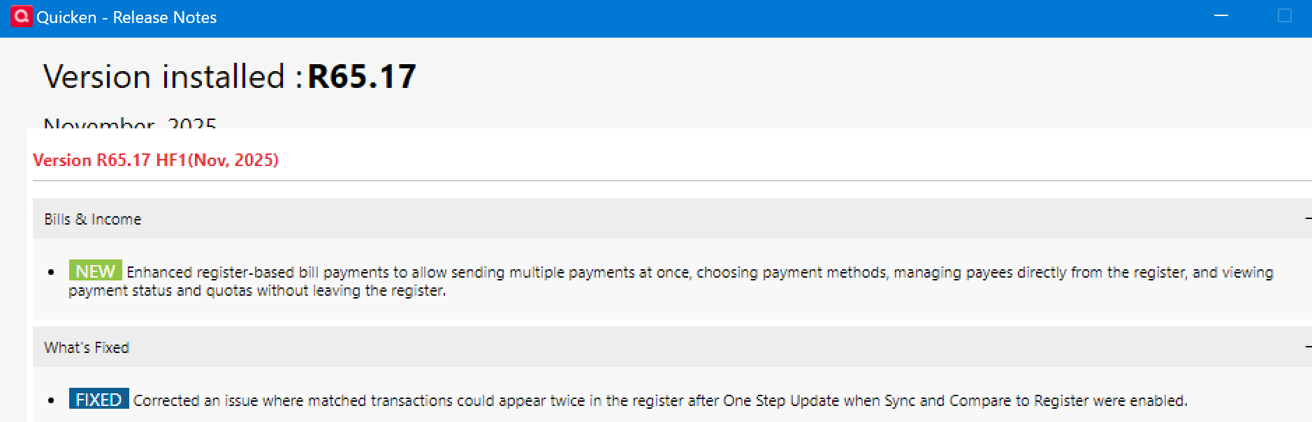 I can see that you updated your Quicken to version R65.17. Is the issue resolved, or is it still persisting?
