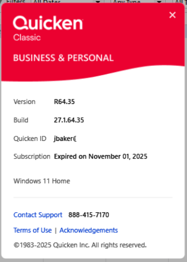 And, if you're not doing so, close Quicken at the end of every day when you're done using it for the day. You want to have Quicken create a backup of your data file as frequently as possible. One can never have enough backups … just in case …
