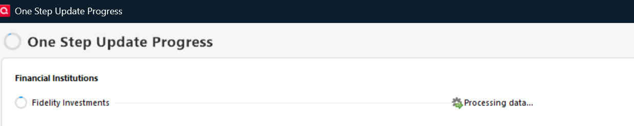 Quicken appears to connect successfully to Fidelity (no error messages).